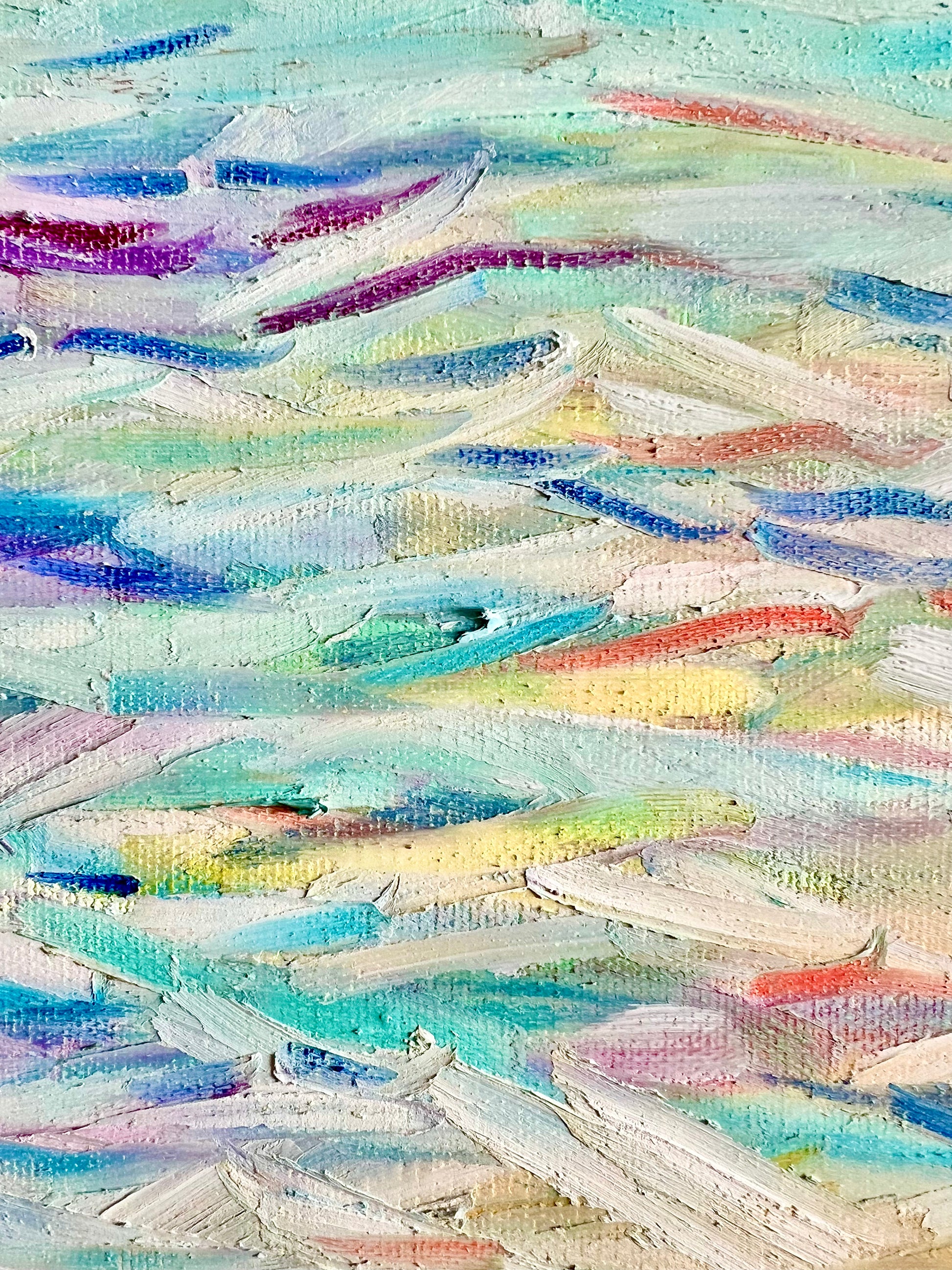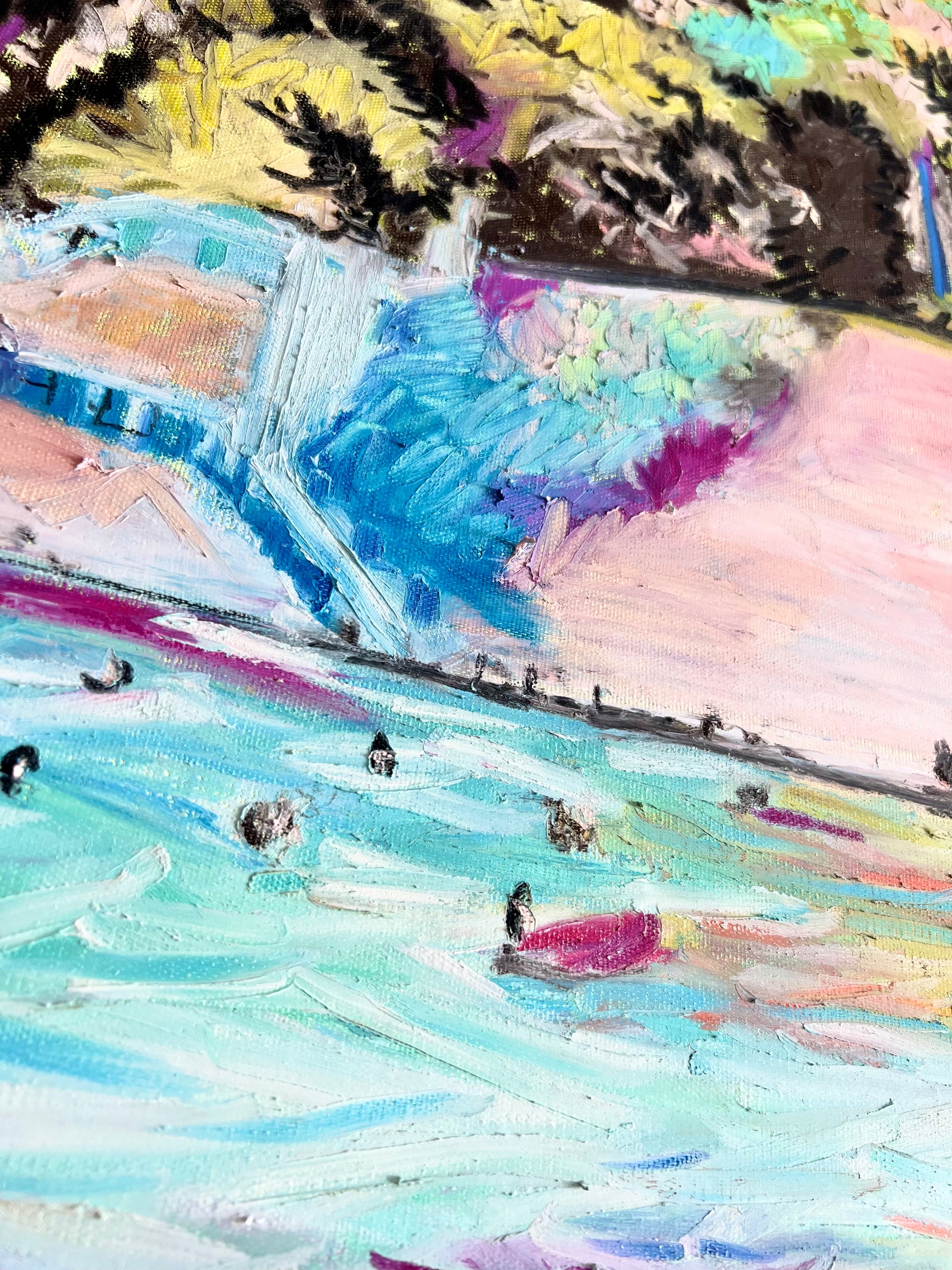 Original oil pastel artwork of La Plage de Passable in Saint-Jean-Cap-Ferrat. This vibrant seaside painting captures the turquoise water, colorful horizon, and Mediterranean light in soft pastel tones. A contemporary Riviera artwork, perfect for collectors seeking colorful coastal wall art and love the South of France.